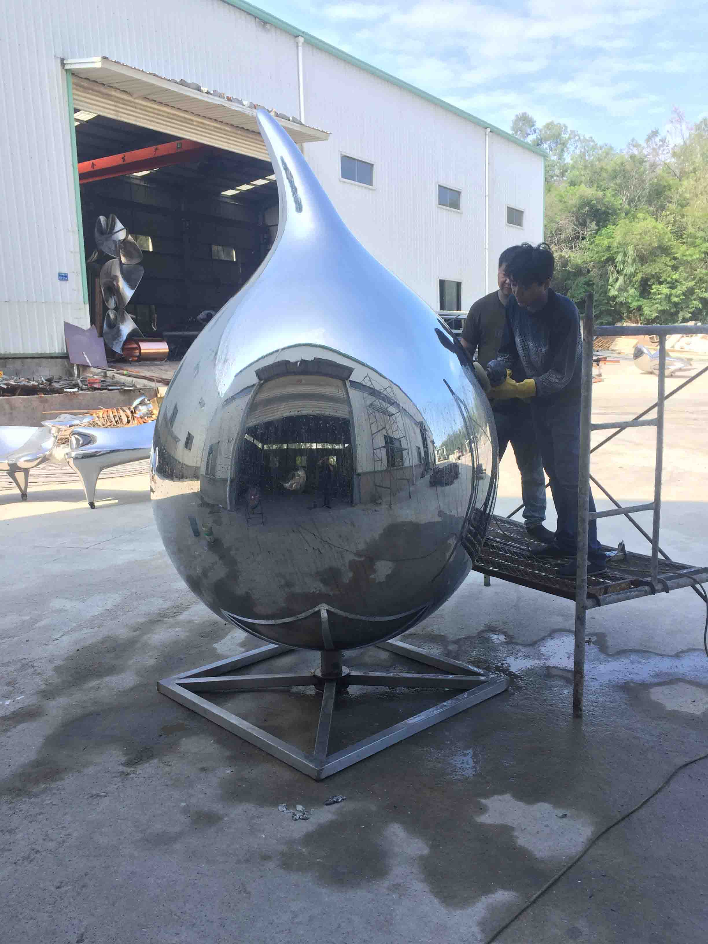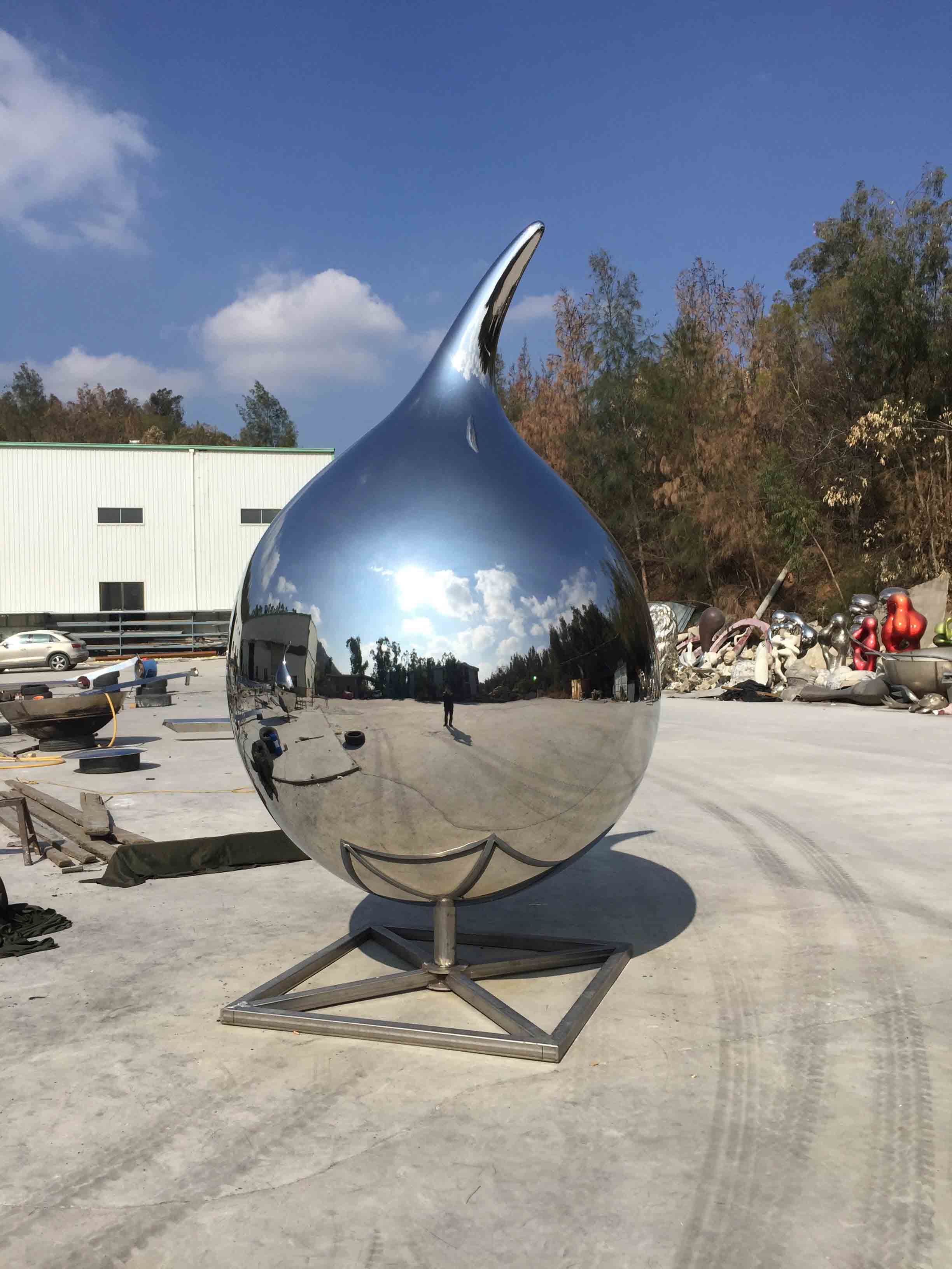 The modern metal outdoor sculpture named "Water-drop".The garden sculpture is made of 316L stainless steel material in polish Mirror which can be lasted very long time if protect well.This art sculpture looks very cute and shinny when sunrise.It is very suit for the Plaza,garden and hotel or other outside places.It will create artistic enviroment around there.Everybody would be happy and comfortable when saw it.
